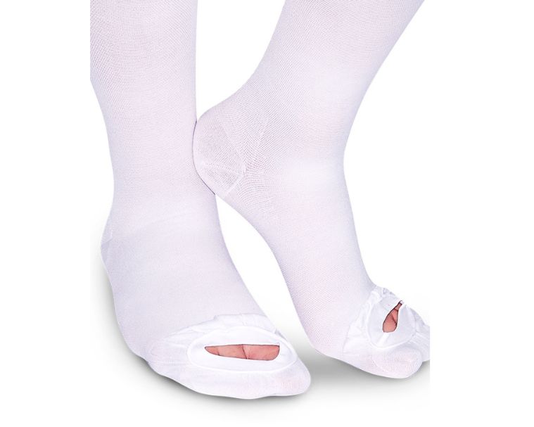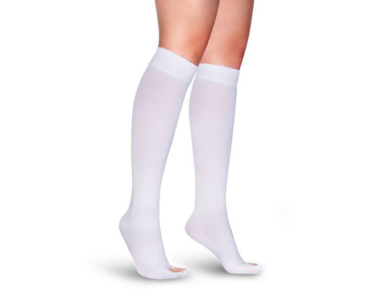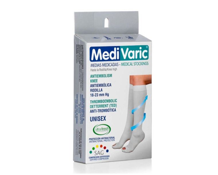 Estas medias son utilizadas en procesos operatorios, tratamientos postoperatorios y tratamientos post escleroterapia, únicamente con el objetivo de prevenir la formación de trombos en las venas profundas y el trombo embolismo pulmonar que puede afectar la salud del paciente. Favorece la circulación y el retorno venoso de la sangre al corazón. Orificio de inspección en la parte superior del pie para permitir al profesional de la salud revisar el avance del proceso de recuperación.
