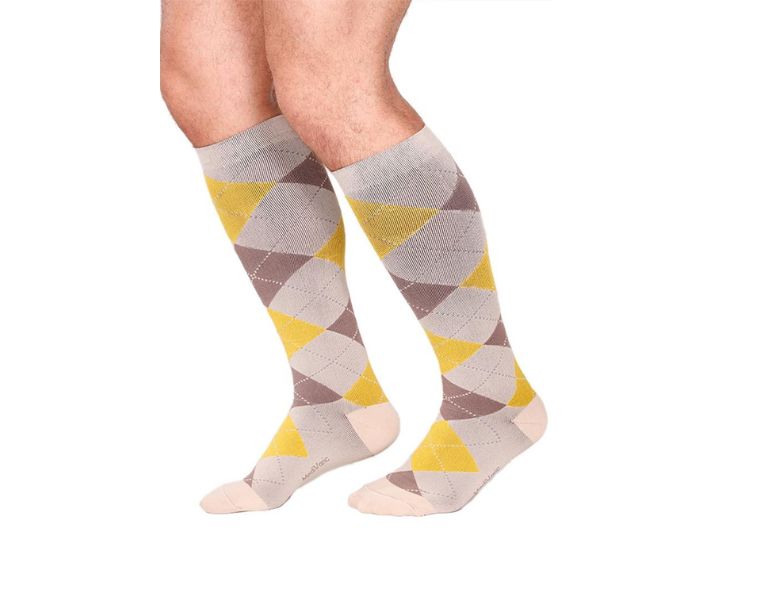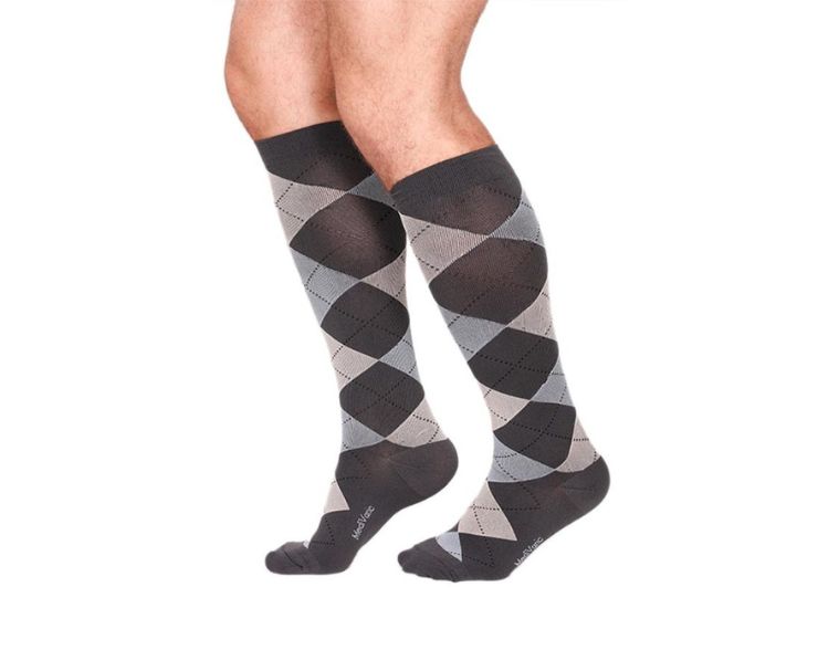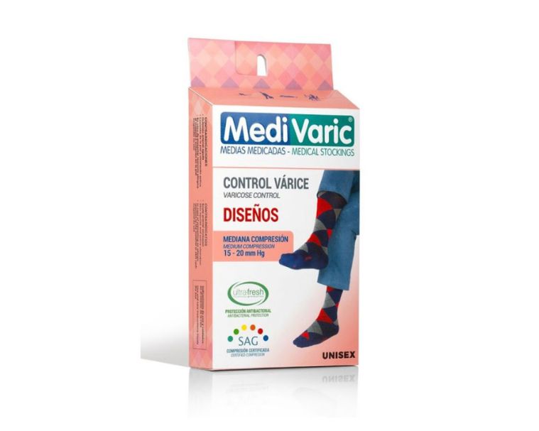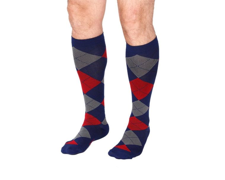 Las medias de compresión mediana o compresión de 15 a 20 mmHg ahora vienen en un exclusivo diseño de rombos, en su presentación calcetín tipo ejecutivo o calcetín para caballero hasta la rodilla.