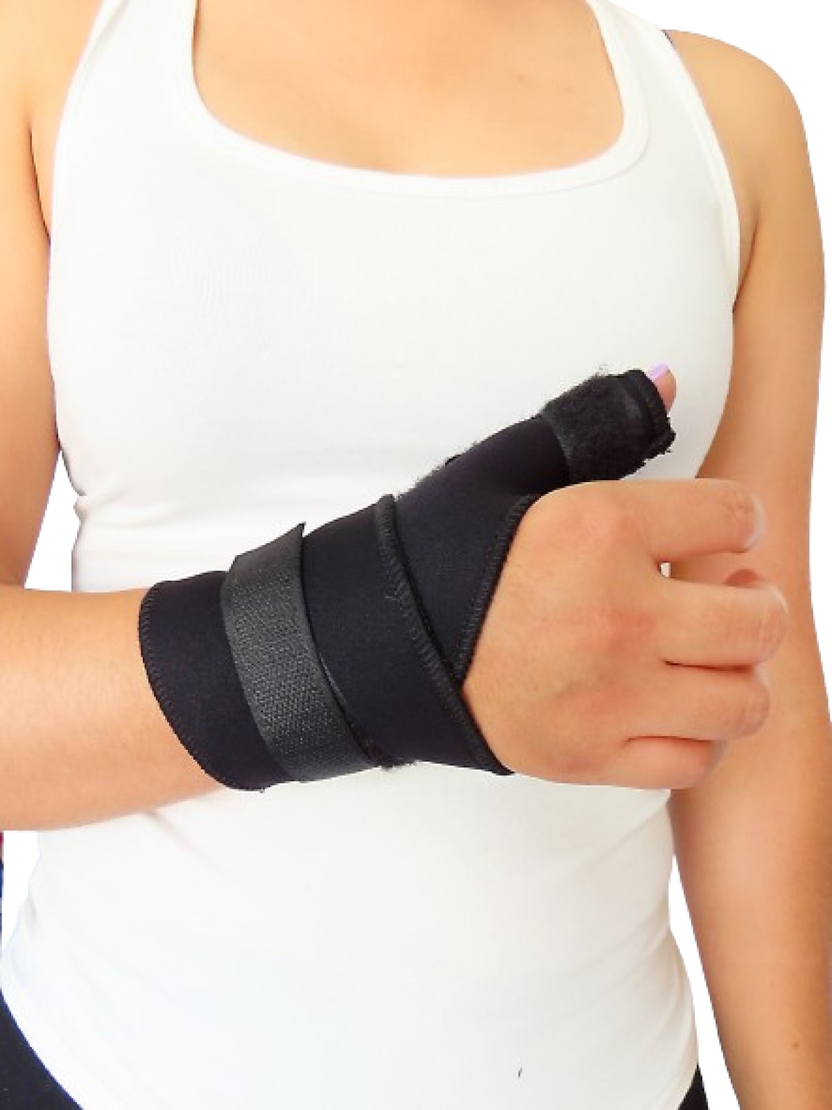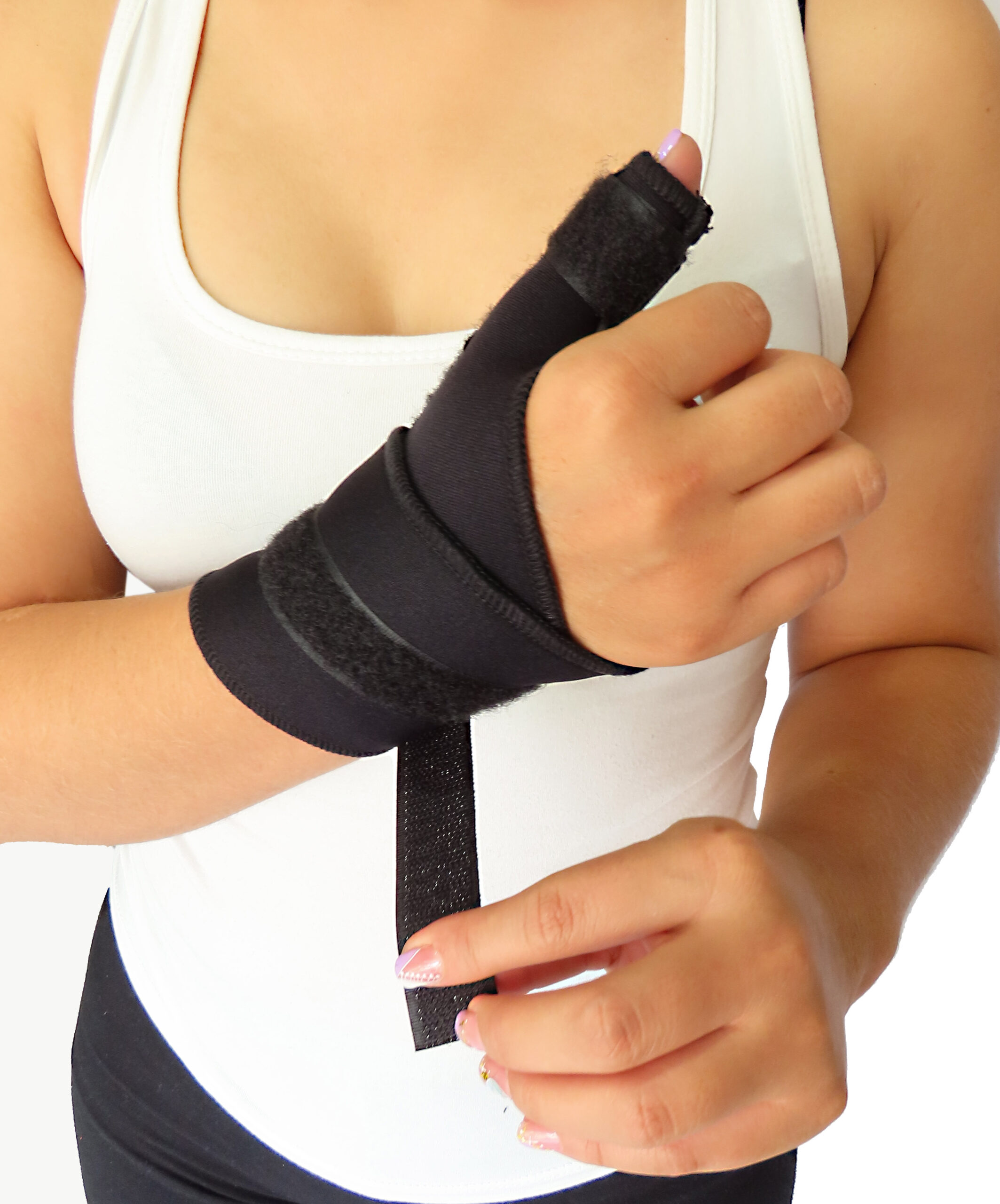 Dispositivo ortopédico diseñado para brindar soporte y estabilidad al pulgar al tiempo que permite su movimiento en una posición de abducción. Está diseñada para aliviar el dolor y proporcionar soporte a las articulaciones del pulgar, siendo útil en situaciones como esguinces, lesiones de ligamentos o para facilitar la recuperación de condiciones que requieren la inmovilización del pulgar en una posición específica.