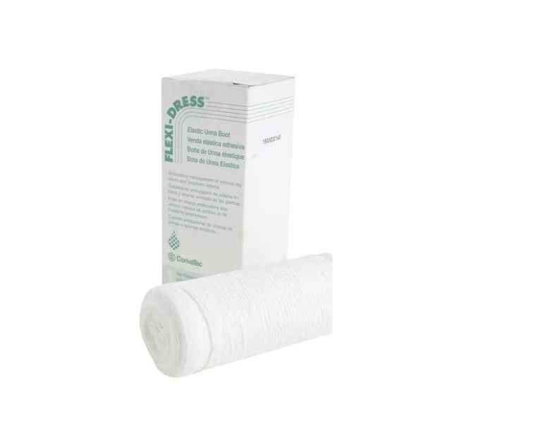 No solidificable por su contenido de emolientes: óxido de zinc, glicerina, aceite de ricino, vaselina; esta venda no se solidifica, permitiendo que la piel periulceral permanezca humectada. Proporciona Elastocompresión: la venda proporciona una presión que favorece el retorno venoso. Por sus componentes emolientes no se adhiere al lecho de la herida favoreciendo la promoción, formación del tejido de granulación y epitelización.